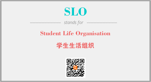 上述内容是“Student Life Organisation”作为“SLO”的缩写,解释为“学生生活组织”时的信息,以及英文缩略词SLO所代表的英文单词,其对应的中文拼音、详细解释以及在英文中的流行度和相关分类、应用领域及应用示例等。