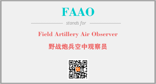 上述内容是“Field Artillery Air Observer”作为“FAAO”的缩写,解释为“野战炮兵空中观察员”时的信息,以及英文缩略词FAAO所代表的英文单词,其对应的中文拼音、详细解释以及在英文中的流行度和相关分类、应用领域及应用示例等。