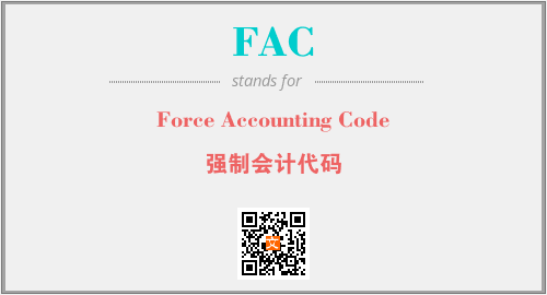 上述内容是“Force Accounting Code”作为“FAC”的缩写,解释为“强制会计代码”时的信息,以及英文缩略词FAC所代表的英文单词,其对应的中文拼音、详细解释以及在英文中的流行度和相关分类、应用领域及应用示例等。