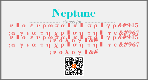 上述内容是“νέο ευρωπαϊκό πρόγραα για τη χρήση της τεχνολογί”作为“Neptune”的缩写,解释为“νέο ευρωπαϊκό πρόγραα για τη χρήση της τεχνολογί”时的信息,以及英文缩略词Neptune所代表的英文单词,其对应的中文拼音、详细解释以及在英文中的流行度和相关分类、应用领域及应用示例等。