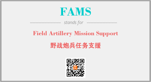 上述内容是“Field Artillery Mission Support”作为“FAMS”的缩写,解释为“野战炮兵任务支援”时的信息,以及英文缩略词FAMS所代表的英文单词,其对应的中文拼音、详细解释以及在英文中的流行度和相关分类、应用领域及应用示例等。