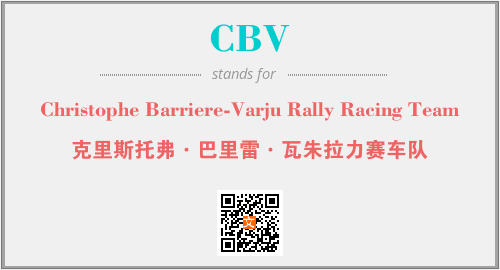 上述内容是“Christophe Barriere-Varju Rally Racing Team”作为“CBV”的缩写,解释为“克里斯托弗·巴里雷·瓦朱拉力赛车队”时的信息,以及英文缩略词CBV所代表的英文单词,其对应的中文拼音、详细解释以及在英文中的流行度和相关分类、应用领域及应用示例等。