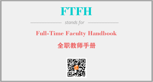 上述内容是“Full-Time Faculty Handbook”作为“FTFH”的缩写,解释为“全职教师手册”时的信息,以及英文缩略词FTFH所代表的英文单词,其对应的中文拼音、详细解释以及在英文中的流行度和相关分类、应用领域及应用示例等。