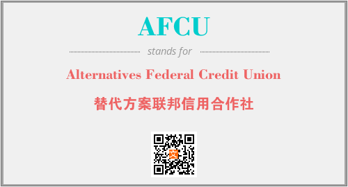 上述内容是“Alternatives Federal Credit Union”作为“AFCU”的缩写,解释为“替代方案联邦信用合作社”时的信息,以及英文缩略词AFCU所代表的英文单词,其对应的中文拼音、详细解释以及在英文中的流行度和相关分类、应用领域及应用示例等。
