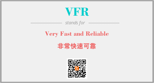 以上为Very Fast and Reliable英文缩略词VFR的中文解释,以及该英文缩写在英语的流行度、分类和应用领域方面的信息。