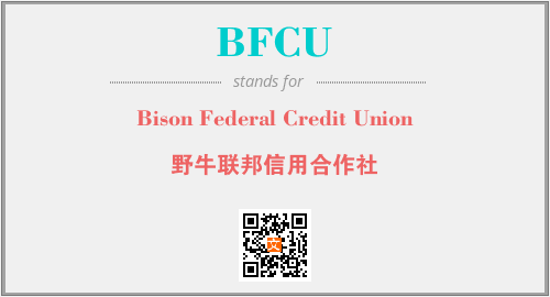 上述内容是“Bison Federal Credit Union”作为“BFCU”的缩写,解释为“野牛联邦信用合作社”时的信息,以及英文缩略词BFCU所代表的英文单词,其对应的中文拼音、详细解释以及在英文中的流行度和相关分类、应用领域及应用示例等。