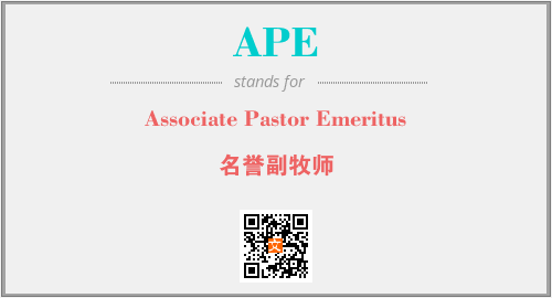 以上为Associate Pastor Emeritus英文缩略词APE的中文解释,以及该英文缩写在英语的流行度、分类和应用领域方面的信息。