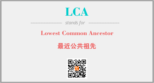 英文缩略词“LCA”经常作为“Lowest Common Ancestor”的英文缩写来使用,中文表示:“最近公共祖先”。本文将详细介绍英文缩写词LCA所代表英文单词,其对应的中文拼音、详细解释以及在英语中的流行度。此外,还有关于缩略词LCA的分类、应用领域及相关应用示例等。