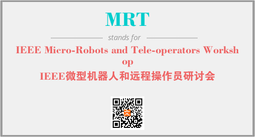 上述内容是“IEEE Micro-Robots and Tele-operators Workshop”作为“MRT”的缩写,解释为“IEEE微型机器人和远程操作员研讨会”时的信息,以及英文缩略词MRT所代表的英文单词,其对应的中文拼音、详细解释以及在英文中的流行度和相关分类、应用领域及应用示例等。