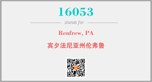 上述内容是“Renfrew, PA”作为“16053”的缩写,解释为“宾夕法尼亚州伦弗鲁”时的信息,以及英文缩略词16053所代表的英文单词,其对应的中文拼音、详细解释以及在英文中的流行度和相关分类、应用领域及应用示例等。