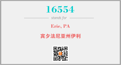 上述内容是“Erie, PA”作为“16554”的缩写,解释为“宾夕法尼亚州伊利”时的信息,以及英文缩略词16554所代表的英文单词,其对应的中文拼音、详细解释以及在英文中的流行度和相关分类、应用领域及应用示例等。