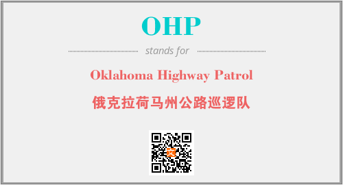 以上为Oklahoma Highway Patrol英文缩略词OHP的中文解释,以及该英文缩写在英语的流行度、分类和应用领域方面的信息。