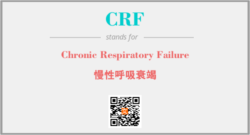 上述内容是“Chronic Respiratory Failure”作为“CRF”的缩写,解释为“慢性呼吸衰竭”时的信息,以及英文缩略词CRF所代表的英文单词,其对应的中文拼音、详细解释以及在英文中的流行度和相关分类、应用领域及应用示例等。