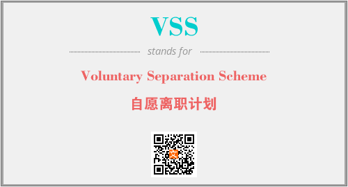 上述内容是“Voluntary Separation Scheme”作为“VSS”的缩写,解释为“自愿离职计划”时的信息,以及英文缩略词VSS所代表的英文单词,其对应的中文拼音、详细解释以及在英文中的流行度和相关分类、应用领域及应用示例等。