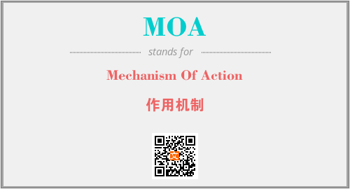 上述内容是“Mechanism Of Action”作为“MOA”的缩写,解释为“作用机制”时的信息,以及英文缩略词MOA所代表的英文单词,其对应的中文拼音、详细解释以及在英文中的流行度和相关分类、应用领域及应用示例等。