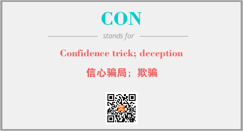 英文缩略词“CON”经常作为“Confidence trick; deception”的英文缩写来使用,中文表示:“信心骗局;欺骗”。本文将详细介绍英文缩写词CON所代表英文单词,其对应的中文拼音、详细解释以及在英语中的流行度。此外,还有关于缩略词CON的分类、应用领域及相关应用示例等。