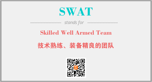 以上为Skilled Well Armed Team英文缩略词SWAT的中文解释,以及该英文缩写在英语的流行度、分类和应用领域方面的信息。