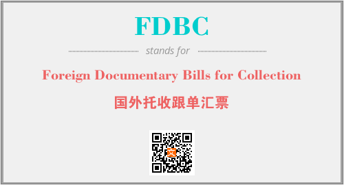 英文缩略词“FDBC”经常作为“Foreign Documentary Bills for Collection”的英文缩写来使用,中文表示:“国外托收跟单汇票”。本文将详细介绍英文缩写词FDBC所代表英文单词,其对应的中文拼音、详细解释以及在英语中的流行度。此外,还有关于缩略词FDBC的分类、应用领域及相关应用示例等。