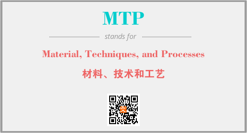 上述内容是“Material, Techniques, and Processes”作为“MTP”的缩写,解释为“材料、技术和工艺”时的信息,以及英文缩略词MTP所代表的英文单词,其对应的中文拼音、详细解释以及在英文中的流行度和相关分类、应用领域及应用示例等。