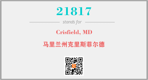 上述内容是“Crisfield, MD”作为“21817”的缩写,解释为“马里兰州克里斯菲尔德”时的信息,以及英文缩略词21817所代表的英文单词,其对应的中文拼音、详细解释以及在英文中的流行度和相关分类、应用领域及应用示例等。