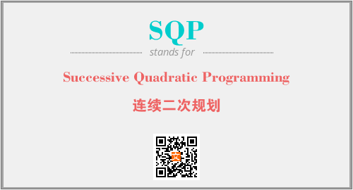 英文缩略词“SQP”经常作为“Successive Quadratic Programming”的英文缩写来使用,中文表示:“连续二次规划”。本文将详细介绍英文缩写词SQP所代表英文单词,其对应的中文拼音、详细解释以及在英语中的流行度。此外,还有关于缩略词SQP的分类、应用领域及相关应用示例等。
