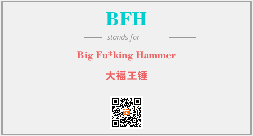 以上为Big Fu*king Hammer英文缩略词BFH的中文解释,以及该英文缩写在英语的流行度、分类和应用领域方面的信息。