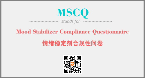 上述内容是“Mood Stabilizer Compliance Questionnaire”作为“MSCQ”的缩写,解释为“情绪稳定剂合规性问卷”时的信息,以及英文缩略词MSCQ所代表的英文单词,其对应的中文拼音、详细解释以及在英文中的流行度和相关分类、应用领域及应用示例等。