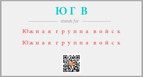 英文缩略词“ЮГВ”经常作为“Южная группа войск”的英文缩写来使用,中文表示:“Южная группа войск”。本文将详细介绍英文缩写词ЮГВ所代表英文单词,其对应的中文拼音、详细解释以及在英语中的流行度。此外,还有关于缩略词ЮГВ的分类、应用领域及相关应用示例等。