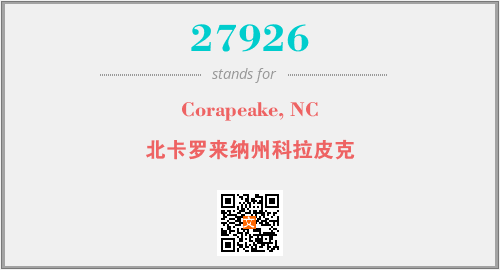 上述内容是“Corapeake, NC”作为“27926”的缩写,解释为“北卡罗来纳州科拉皮克”时的信息,以及英文缩略词27926所代表的英文单词,其对应的中文拼音、详细解释以及在英文中的流行度和相关分类、应用领域及应用示例等。