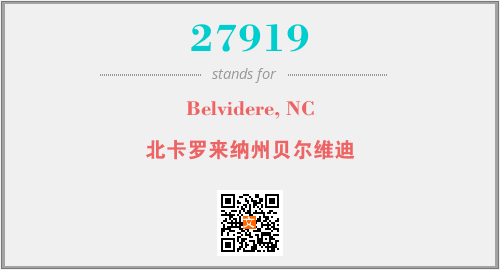 上述内容是“Belvidere, NC”作为“27919”的缩写,解释为“北卡罗来纳州贝尔维迪”时的信息,以及英文缩略词27919所代表的英文单词,其对应的中文拼音、详细解释以及在英文中的流行度和相关分类、应用领域及应用示例等。