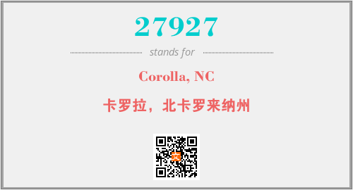上述内容是“Corolla, NC”作为“27927”的缩写,解释为“卡罗拉,北卡罗来纳州”时的信息,以及英文缩略词27927所代表的英文单词,其对应的中文拼音、详细解释以及在英文中的流行度和相关分类、应用领域及应用示例等。