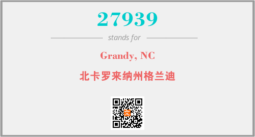 上述内容是“Grandy, NC”作为“27939”的缩写,解释为“北卡罗来纳州格兰迪”时的信息,以及英文缩略词27939所代表的英文单词,其对应的中文拼音、详细解释以及在英文中的流行度和相关分类、应用领域及应用示例等。