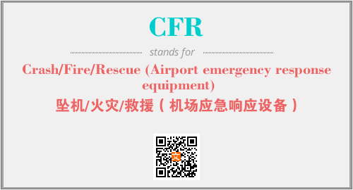 上述内容是“Crash/Fire/Rescue (Airport emergency response equipment)”作为“CFR”的缩写,解释为“坠机/火灾/救援(机场应急响应设备)”时的信息,以及英文缩略词CFR所代表的英文单词,其对应的中文拼音、详细解释以及在英文中的流行度和相关分类、应用领域及应用示例等。