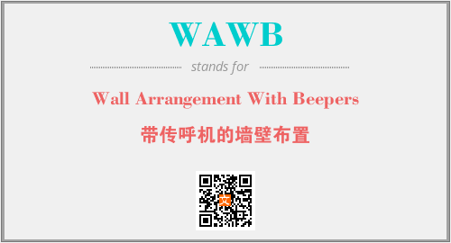 上述内容是“Wall Arrangement With Beepers”作为“WAWB”的缩写,解释为“带传呼机的墙壁布置”时的信息,以及英文缩略词WAWB所代表的英文单词,其对应的中文拼音、详细解释以及在英文中的流行度和相关分类、应用领域及应用示例等。