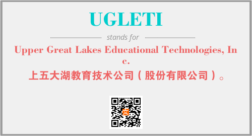 上述内容是“Upper Great Lakes Educational Technologies, Inc.”作为“UGLETI”的缩写,解释为“上五大湖教育技术公司(股份有限公司)。”时的信息,以及英文缩略词UGLETI所代表的英文单词,其对应的中文拼音、详细解释以及在英文中的流行度和相关分类、应用领域及应用示例等。