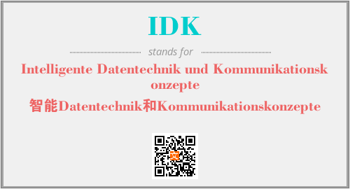 上述内容是“Intelligente Datentechnik und Kommunikationskonzepte”作为“IDK”的缩写,解释为“智能Datentechnik和Kommunikationskonzepte”时的信息,以及英文缩略词IDK所代表的英文单词,其对应的中文拼音、详细解释以及在英文中的流行度和相关分类、应用领域及应用示例等。