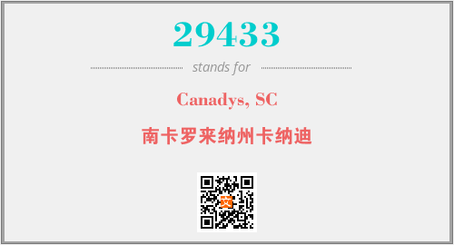 上述内容是“Canadys, SC”作为“29433”的缩写,解释为“南卡罗来纳州卡纳迪”时的信息,以及英文缩略词29433所代表的英文单词,其对应的中文拼音、详细解释以及在英文中的流行度和相关分类、应用领域及应用示例等。