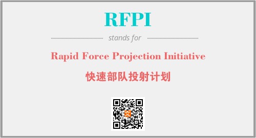 上述内容是“Rapid Force Projection Initiative”作为“RFPI”的缩写,解释为“快速部队投射计划”时的信息,以及英文缩略词RFPI所代表的英文单词,其对应的中文拼音、详细解释以及在英文中的流行度和相关分类、应用领域及应用示例等。