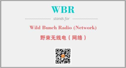 上述内容是“Wild Bunch Radio (Network)”作为“WBR”的缩写,解释为“野束无线电(网络)”时的信息,以及英文缩略词WBR所代表的英文单词,其对应的中文拼音、详细解释以及在英文中的流行度和相关分类、应用领域及应用示例等。