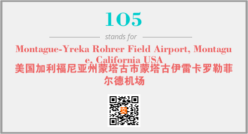 上述内容是“Montague-Yreka Rohrer Field Airport, Montague, California USA”作为“1O5”的缩写,解释为“美国加利福尼亚州蒙塔古市蒙塔古伊雷卡罗勒菲尔德机场”时的信息,以及英文缩略词1O5所代表的英文单词,其对应的中文拼音、详细解释以及在英文中的流行度和相关分类、应用领域及应用示例等。