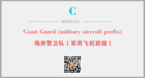 上述内容是“Coast Guard (military aircraft prefix)”作为“C”的缩写,解释为“海岸警卫队(军用飞机前缀)”时的信息,以及英文缩略词C所代表的英文单词,其对应的中文拼音、详细解释以及在英文中的流行度和相关分类、应用领域及应用示例等。