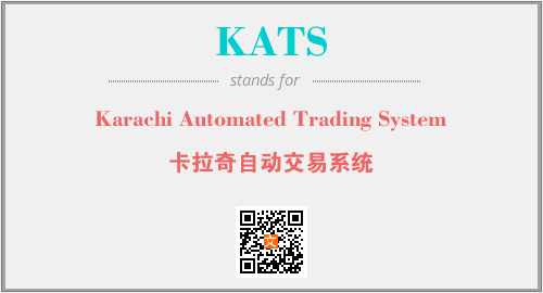 上述内容是“Karachi Automated Trading System”作为“KATS”的缩写,解释为“卡拉奇自动交易系统”时的信息,以及英文缩略词KATS所代表的英文单词,其对应的中文拼音、详细解释以及在英文中的流行度和相关分类、应用领域及应用示例等。