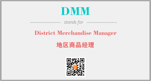 英文缩略词“DMM”经常作为“District Merchandise Manager”的英文缩写来使用,中文表示:“地区商品经理”。本文将详细介绍英文缩写词DMM所代表英文单词,其对应的中文拼音、详细解释以及在英语中的流行度。此外,还有关于缩略词DMM的分类、应用领域及相关应用示例等。