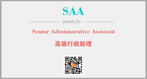 英文缩略词“SAA”经常作为“Senior Administrative Assistant”的英文缩写来使用,中文表示:“高级行政助理”。本文将详细介绍英文缩写词SAA所代表英文单词,其对应的中文拼音、详细解释以及在英语中的流行度。此外,还有关于缩略词SAA的分类、应用领域及相关应用示例等。