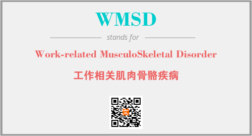 上述内容是“Work-related MusculoSkeletal Disorder”作为“WMSD”的缩写,解释为“工作相关肌肉骨骼疾病”时的信息,以及英文缩略词WMSD所代表的英文单词,其对应的中文拼音、详细解释以及在英文中的流行度和相关分类、应用领域及应用示例等。