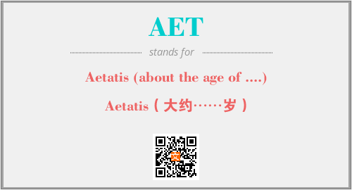 英文缩略词“AET”经常作为“Aetatis (about the age of ....)”的英文缩写来使用,中文表示:“Aetatis(大约……岁)”。本文将详细介绍英文缩写词AET所代表英文单词,其对应的中文拼音、详细解释以及在英语中的流行度。此外,还有关于缩略词AET的分类、应用领域及相关应用示例等。