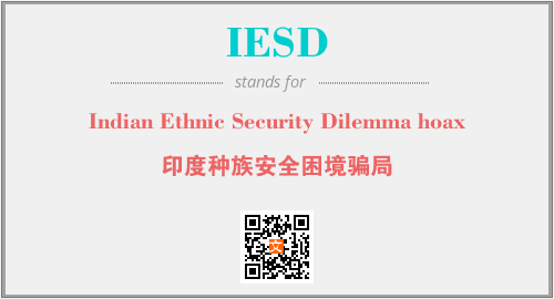上述内容是“Indian Ethnic Security Dilemma hoax”作为“IESD”的缩写,解释为“印度种族安全困境骗局”时的信息,以及英文缩略词IESD所代表的英文单词,其对应的中文拼音、详细解释以及在英文中的流行度和相关分类、应用领域及应用示例等。