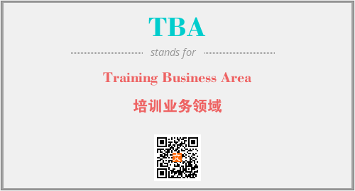 上述内容是“Training Business Area”作为“TBA”的缩写,解释为“培训业务领域”时的信息,以及英文缩略词TBA所代表的英文单词,其对应的中文拼音、详细解释以及在英文中的流行度和相关分类、应用领域及应用示例等。