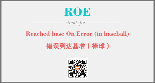 英文缩略词“ROE”经常作为“Reached base On Error (in baseball)”的英文缩写来使用,中文表示:“错误到达基准(棒球)”。本文将详细介绍英文缩写词ROE所代表英文单词,其对应的中文拼音、详细解释以及在英语中的流行度。此外,还有关于缩略词ROE的分类、应用领域及相关应用示例等。