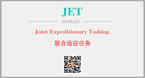 英文缩略词“JET”经常作为“Joint Expeditionary Tasking”的英文缩写来使用,中文表示:“联合远征任务”。本文将详细介绍英文缩写词JET所代表英文单词,其对应的中文拼音、详细解释以及在英语中的流行度。此外,还有关于缩略词JET的分类、应用领域及相关应用示例等。
